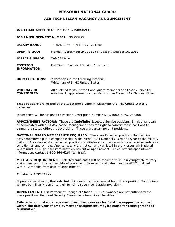 · Aircraft Sheet Metal Mechanics (airframe and power plant preferred) · SIGINT/MASINT Signal Analysts · Mechanical/Electrical Technicians · IT Network Support Technicians Vocational Positions · Field & Service Mechanics · Physical Security Professionals/Guards ... Doc Retrieval